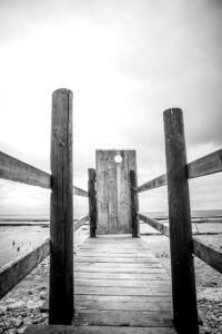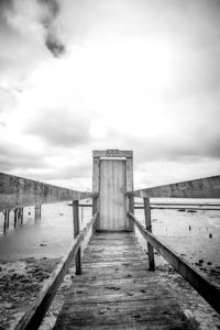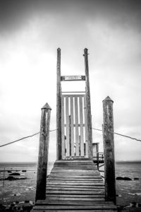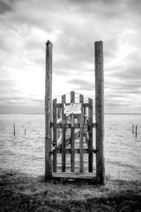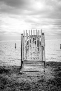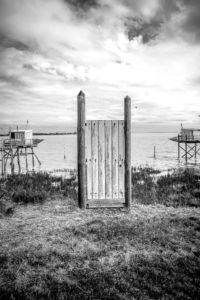 Partant souvent en vacances dans cette région, j’ai toujours été fasciné par ces pontons qui mènent au carrelet, avec ces portes en apparence infranchissables qui barricadent l’entrée.