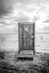 Par mon choix d’angle de prise de vue, j’ai voulu donner l’impression que ces portes fermées donnent sur nulle part (ou plutôt sur l’océan) , a quoi servent elles ? vers quel univers nous emmènent elles ?